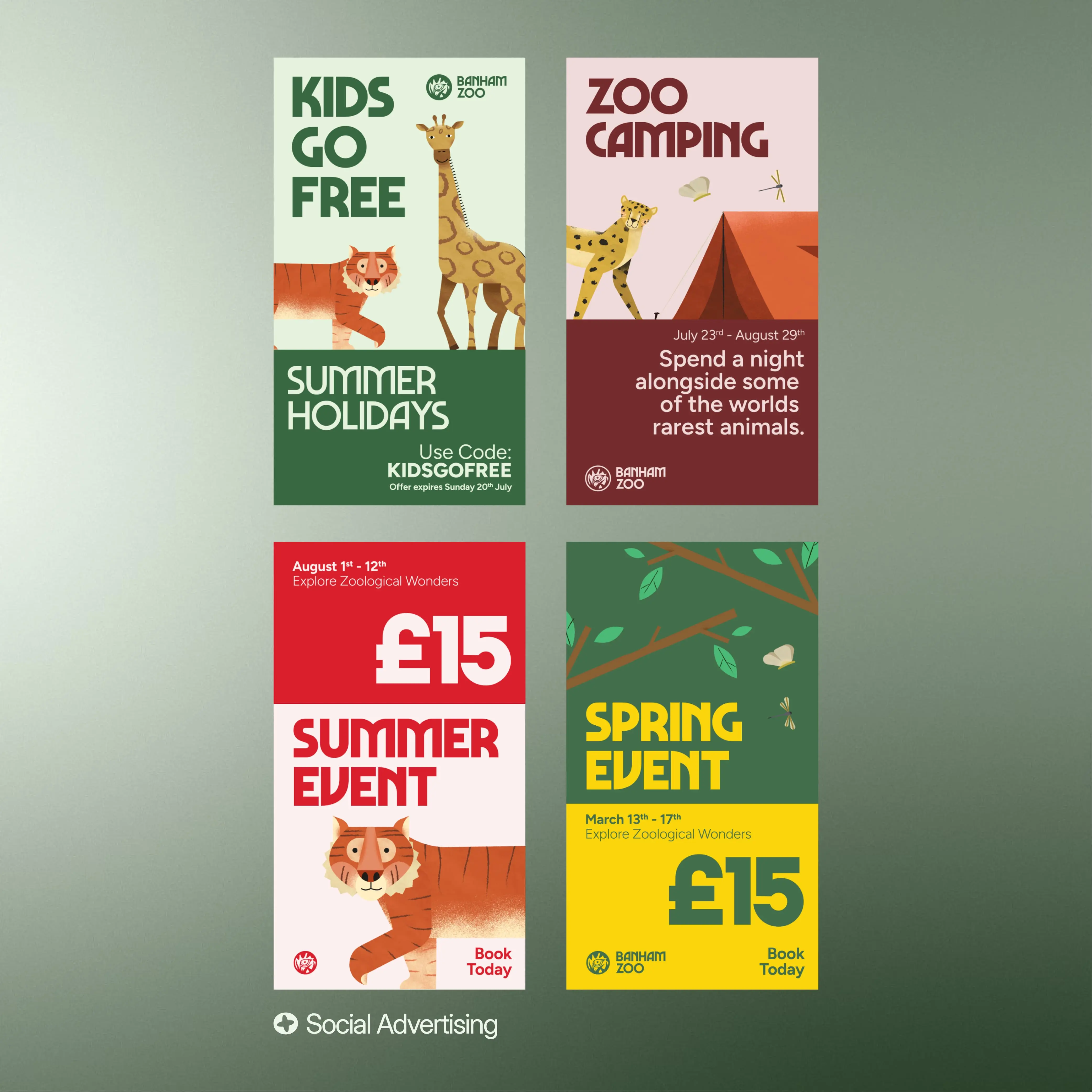 I was tasked with creating not only a bold brand that lets Banham Zoo rightfully sit at the top of their field, but a usable system that will live on and be able to be easily replicated for years to come to ensure the next generation of zoologists are inspired to continue on the task of ensuring animal conservation and welfare is maintained.